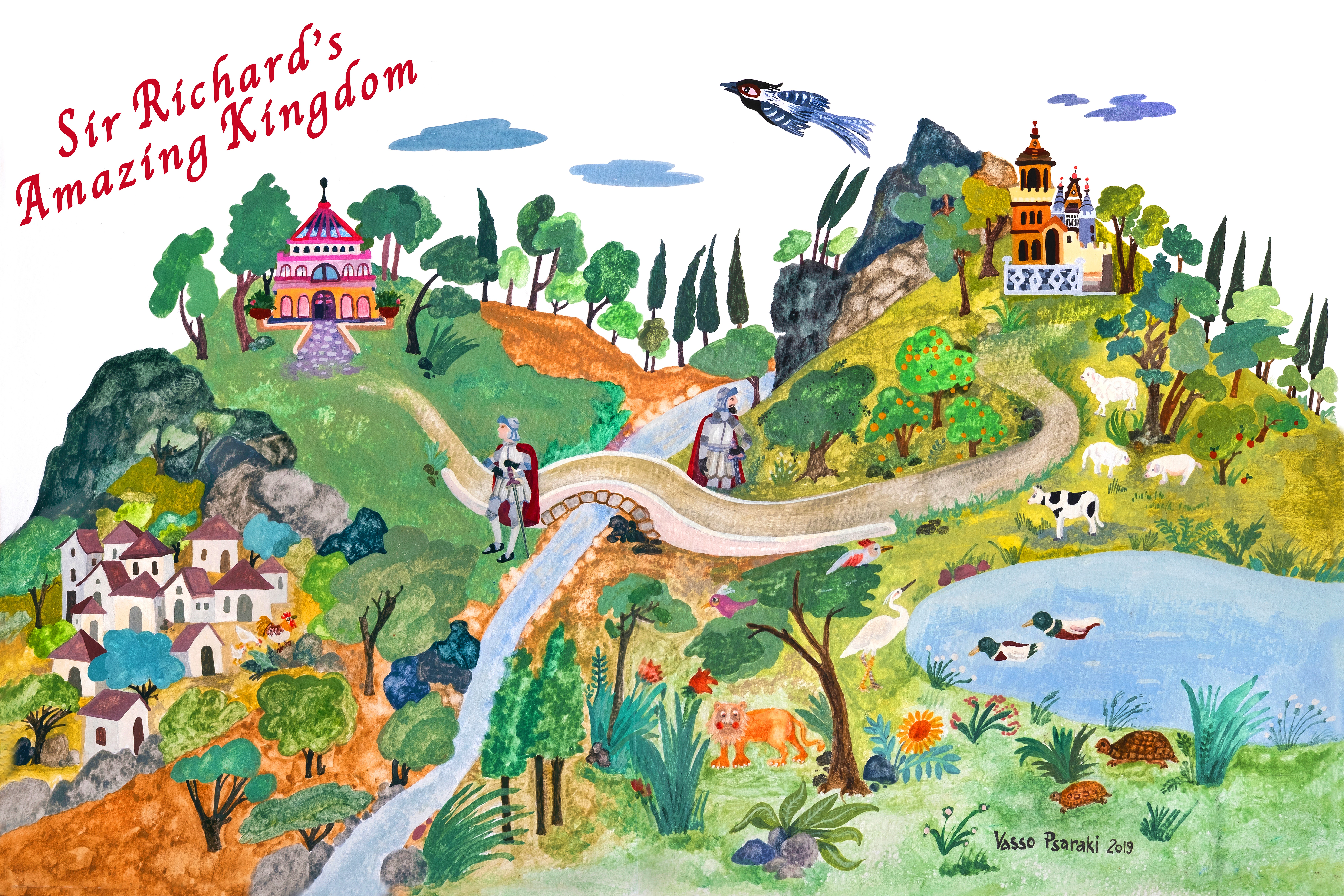 I am very grateful to Vasso Psaraki, a well established children’s book author and illustrator from Greece, for illustrating Sir Richard’s Amazing Kingdom. Her beautiful and imaginative illustrations really bring the story to life. It is available in hardcover (standard edition) and Kindle through Amazon, Barnes & Noble and other online and brick & mortar book sellers. A special edition with an illustrated map of Sir Richard’s kingdom on both the inside covers, a deluxe hardcover with stitched binding and thicker pages (with no barcode on the outside back cover), is available through my website and select independent bookstores.